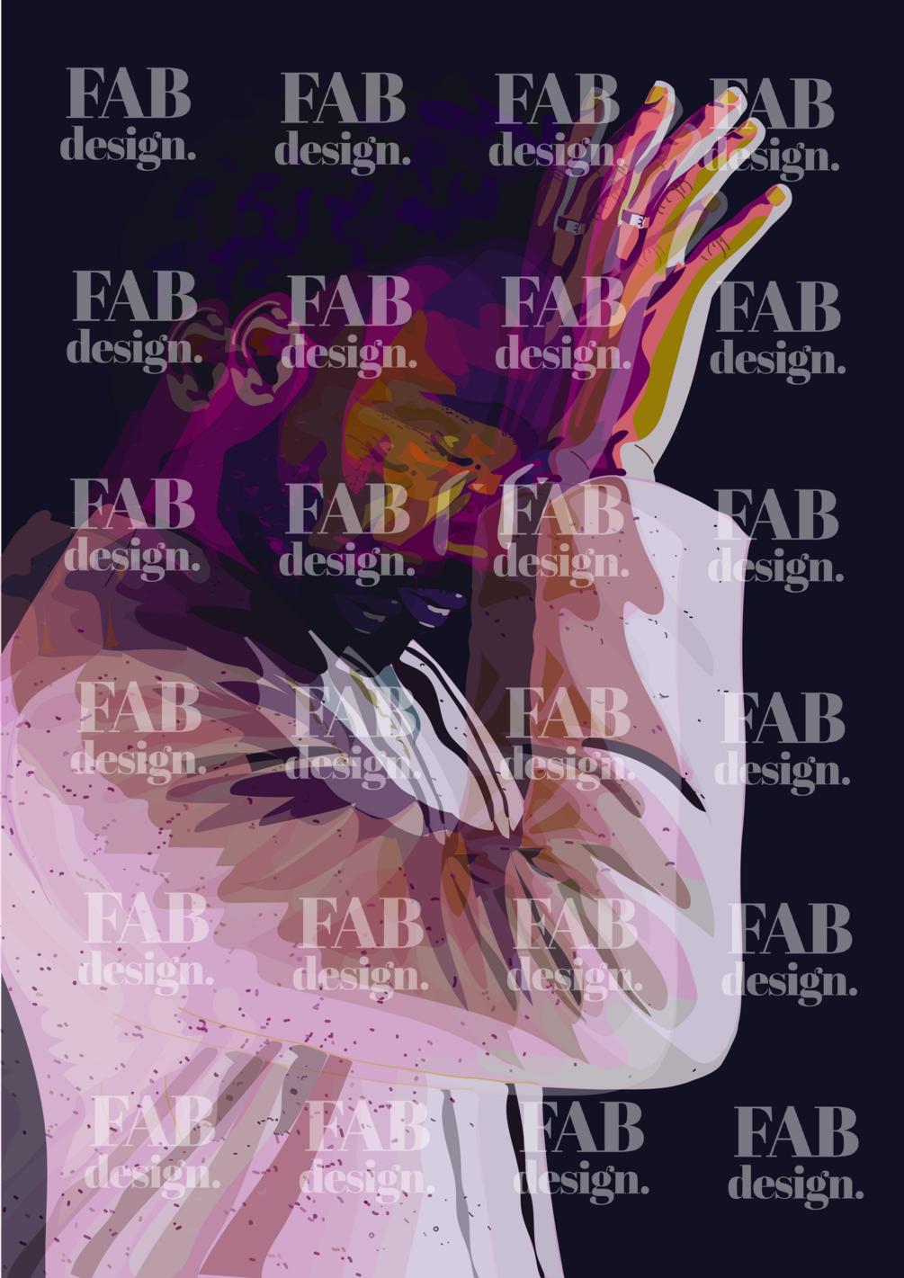 Childish Gambino colour illustration, slightly trippy with a light and dark background.